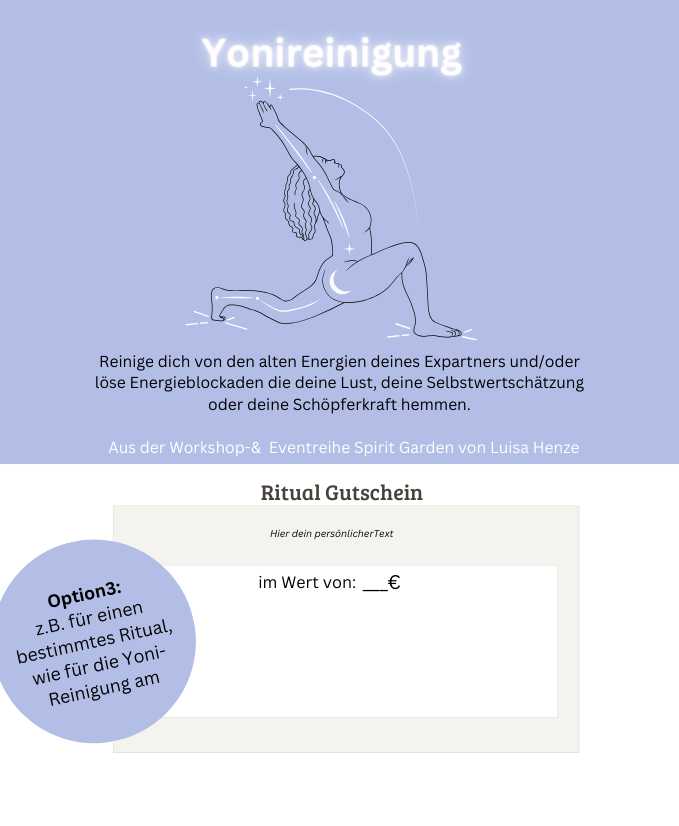 verschenke einen Gutschein für ein bestimmtes Angebot von Spirit Garden, wie das die Yoni-Reinigung am 27.03.24.
